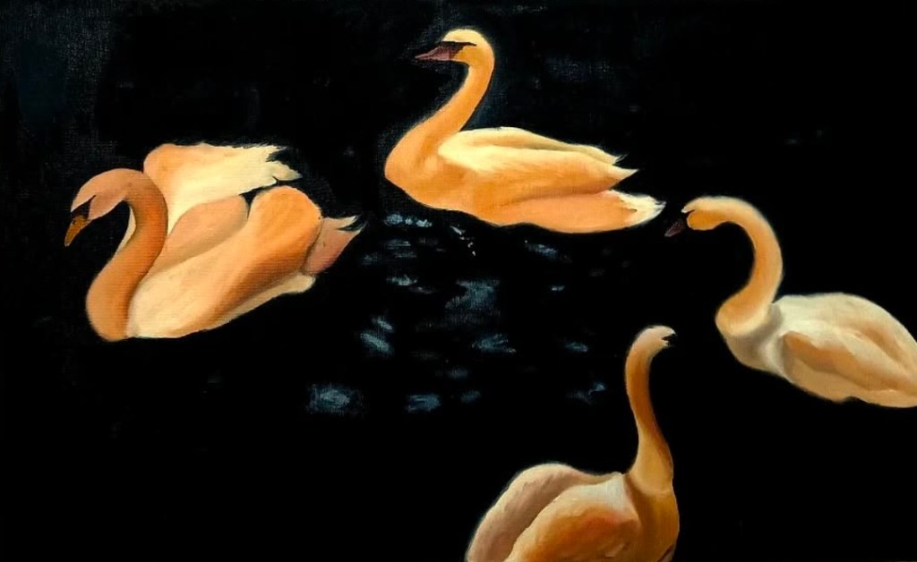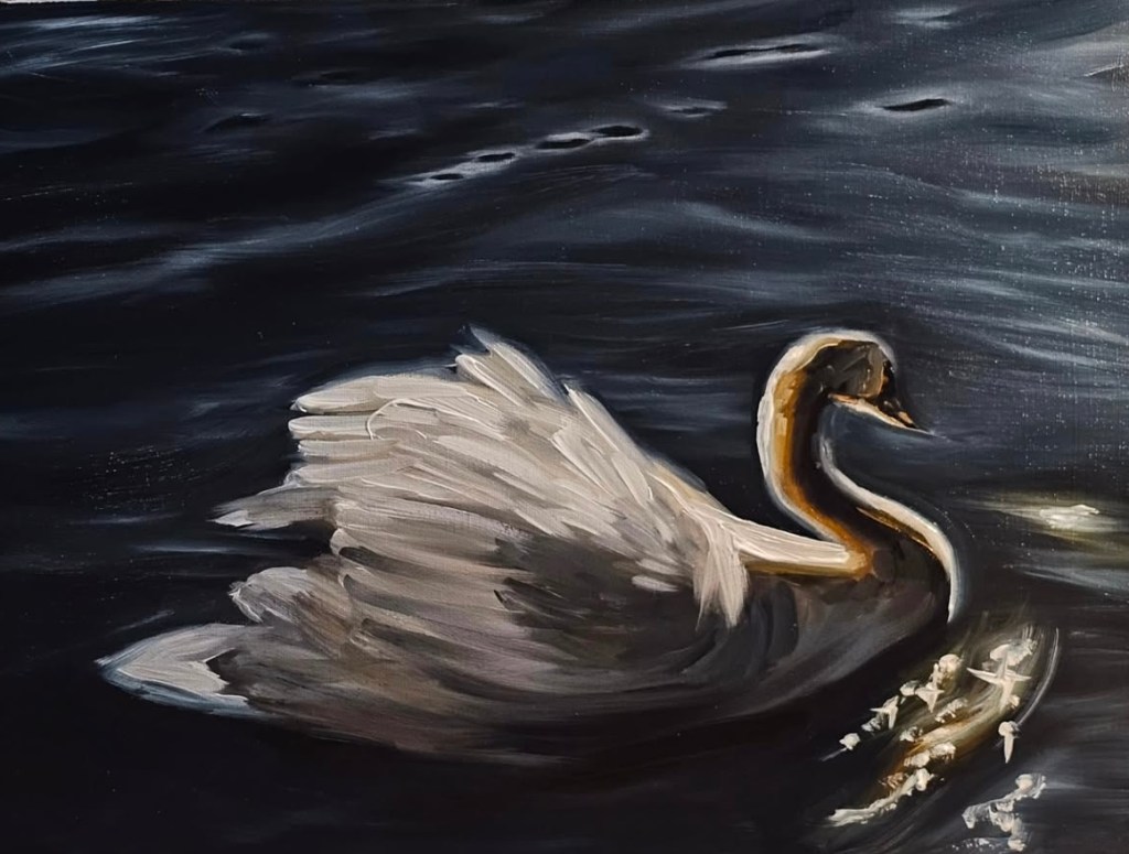 Inaya’s art isn’t about momentous declarations; it’s about the quotidian details that make life feel genuine. A passing glance, the hush of twilight, the way a plane’s trail fades into the sky — she catches them as if pressed flowers, clinging to what might slip away. Her paintings never call loudly for attention; they draw you in gently, like a secret in waiting.